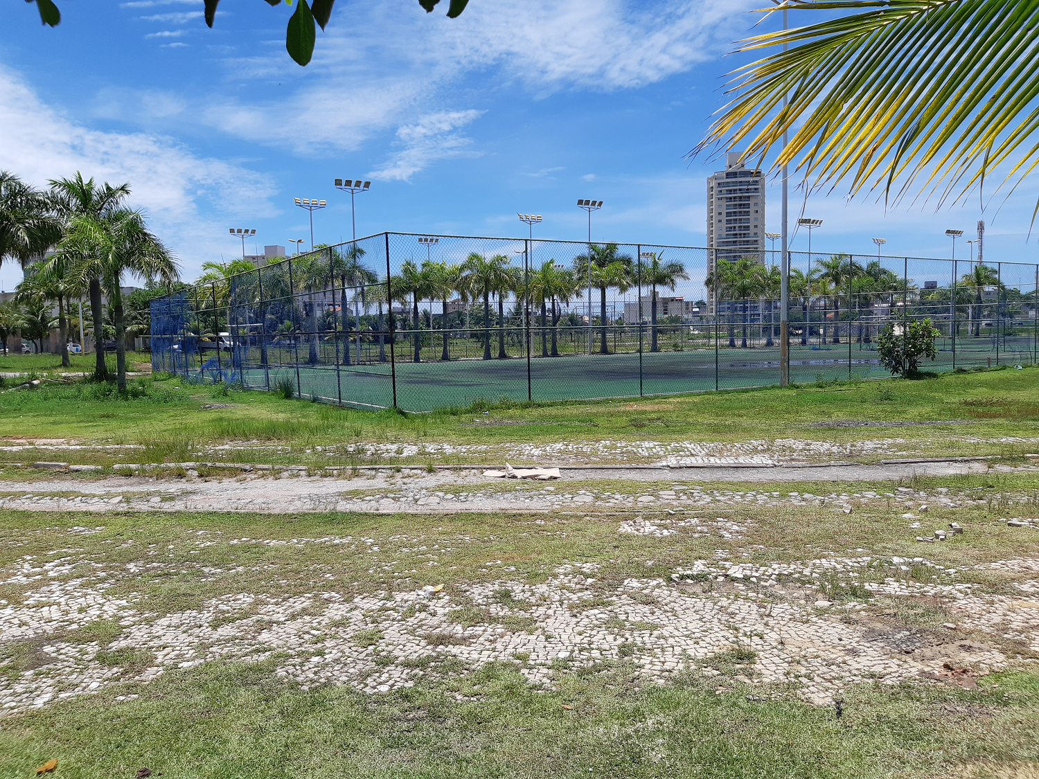 As equipes já estão realizando as ações de topografia do local, o que permite descrever as características do terreno com exatidão, incluindo as diferenças de nível (inclinações). E nos próximos dias a área que fica próxima aos antigos campos de grama sintética, onde futuramente funcionará a estação elevatória, será cercada para o andamento dos trabalhos.